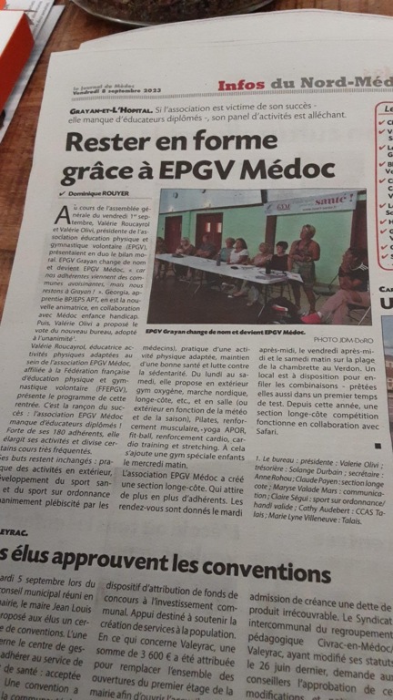 Après notre Assemblée Générale qui a eut lieu le 1er septembre, nous avons eut la joie de paraitre dans le journal du médoc avec un bel article !