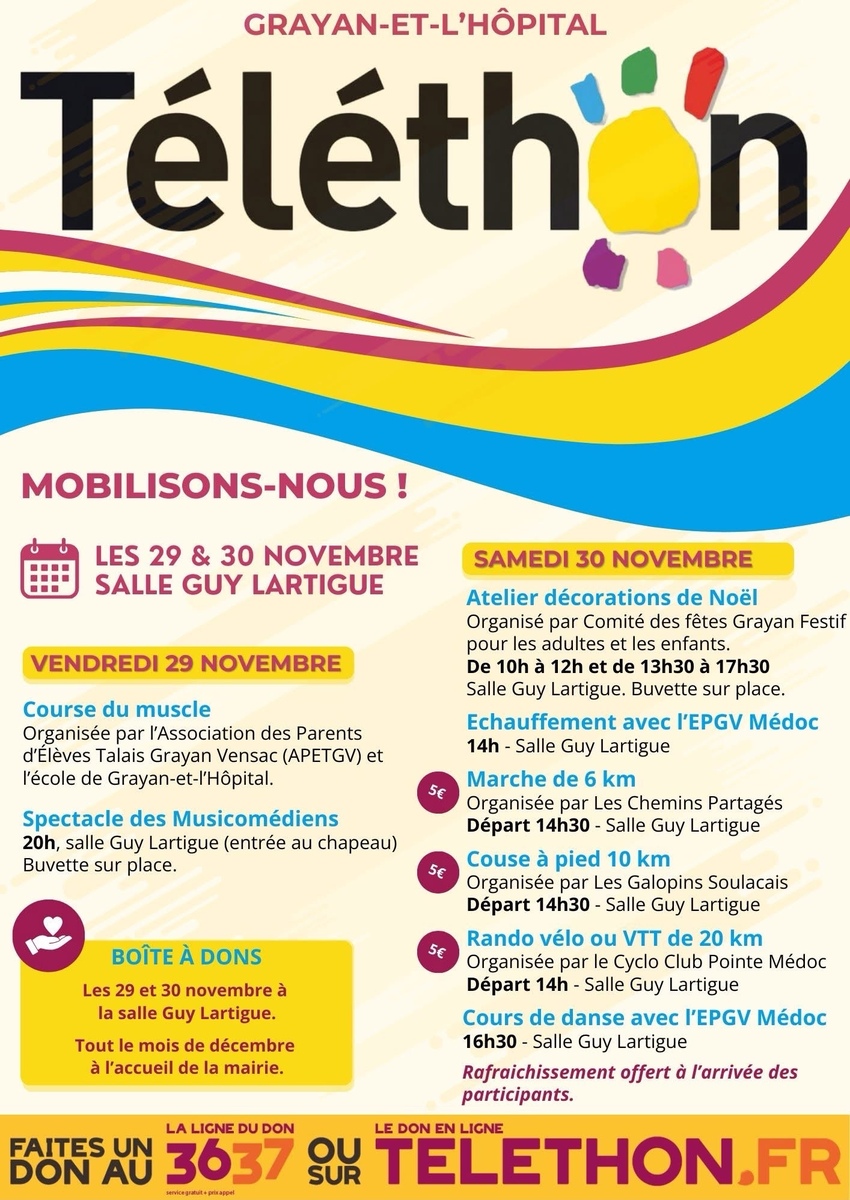 Ce week end le Telethon est en fête à Grayan et l'hôpital à la salle Guy Lartigue.
